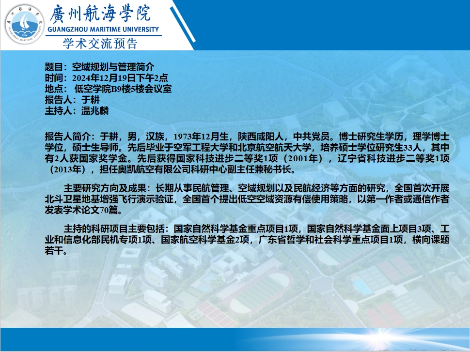 “低空翱翔”:于耕教授 《空域规划与管理简介》