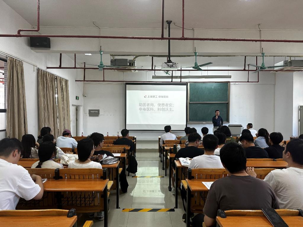 上海建工申粤医科播放了本公司的宣传片,邵寅燊结合宣讲PPT向在场的同学们展示了公司的企业文化、企业愿景、所获奖项及公司未来发展前景,着重介绍了公司的一些规章制度、员工待遇、组织构架及发展前景,并诚挚地邀请同学们加入并实现自己的梦想。在互动环节,邵寅燊解答了同学们关于福利待遇、岗位适配、职业发展方面的问题。宣讲结束后,企业现场建立了沟通群,同学们踊跃进群了解公司情况并投递简历。
