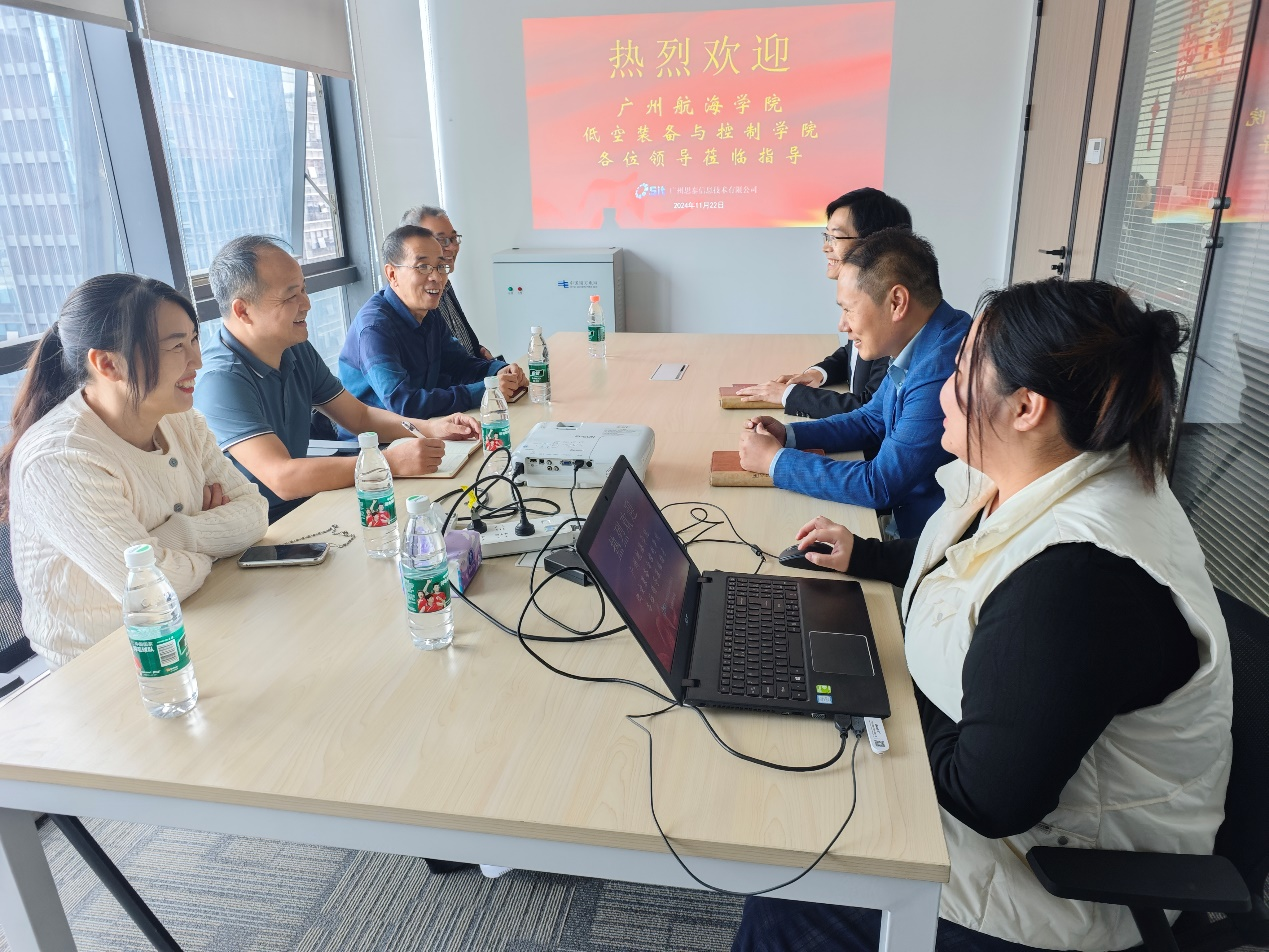 此前,11月18日,温兆麟、李坚、贾小爽一行走访广州超海电子设备有限公司。在交流过程中,公司总经理曹木然详细介绍了公司的整体概况、发展历程、业务范围等情况。他对公司的人才培养质量高度认可,表示公司已经有多名毕业生在该公司工作5年以上,目前年薪能达到30-40万元。他非常期待公司的优秀人才加入企业,本次计划在公司招聘6名毕业生。座谈会上双方就用人需求、岗位职责、企业福利待遇等问题进行了深入交流,达成初步合作共识,为下一步细化具体措施、促成搭建契合的合作平台奠定了基础。