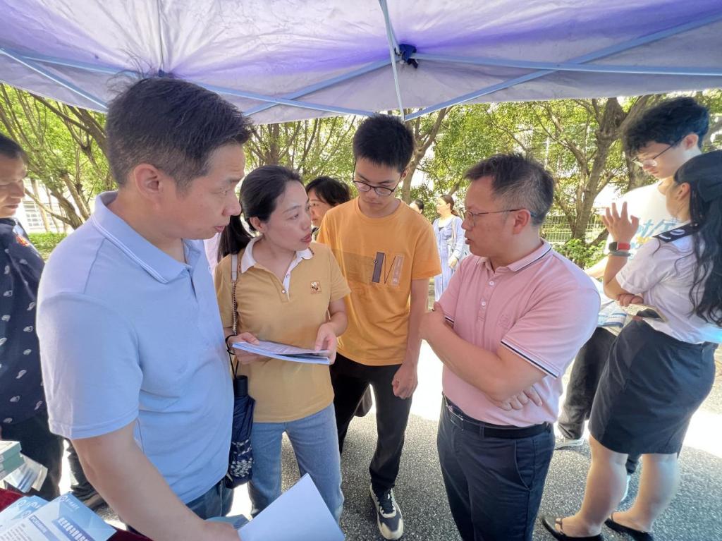 相约盛夏。上午9点,家长和考生络绎不绝,对公司专业十分感兴趣。“我理工类广东全省排位8万+,能不能报考电气工程及其自动化专业?”“我家小孩计划报考通信工程专业,想提前了解下大学学习的课程及未来就业方向”“公司住宿环境怎么样”......对于考生及家长的热情提问,​公司党委书记温兆麟、专业老师、辅导员老师在现场热情耐心回复。