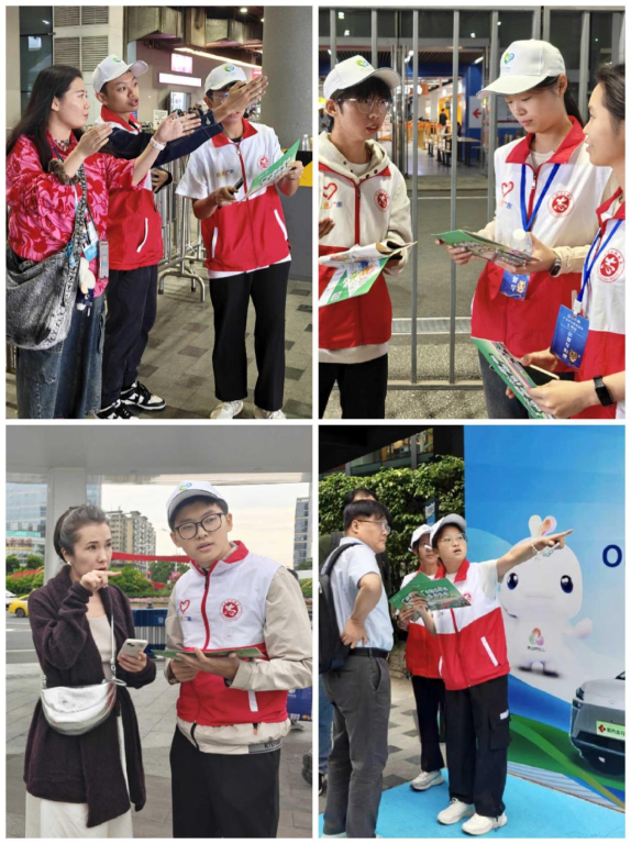 11月3日清晨,志愿者们身着统一红白志愿马甲集结完毕,怀揣热忱正式开启志愿服务征程。在展馆入口、地铁接驳点等关键服务点位,志愿者们化身客商的“导航明灯”,凭借对展馆布局、交通动线的精准掌握,用流利的中英双语提供路线指引、场馆定位等服务,耐心解答每一个问询,细致化解每一处困惑。服务时的青春昂扬,为外籍客商讲解时的专注耐心,指引方向的从容专业,一个个生动场景,定格下青春奉献的温暖瞬间,成为盛会中一道亮丽风景线。