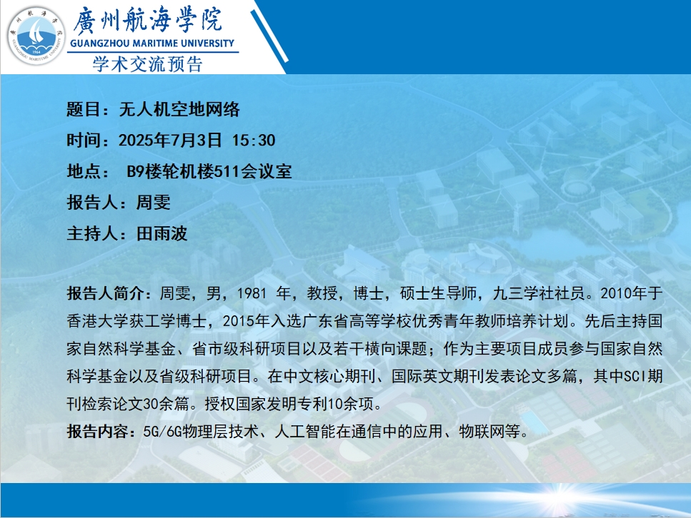 学术预告:周雯《无人机空地网络》