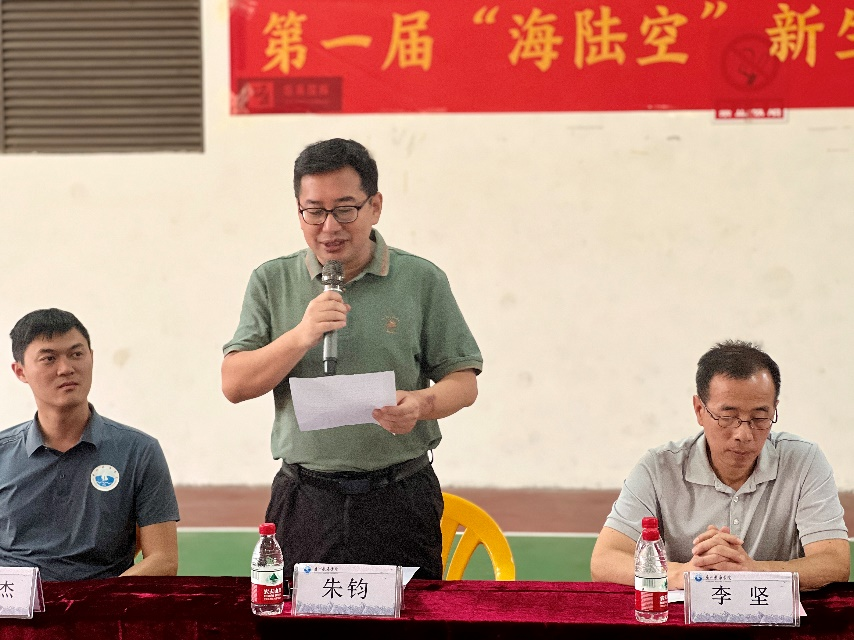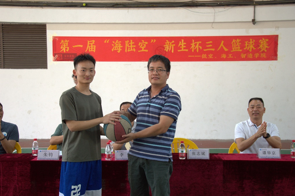 最后,在全场热烈的掌声中,李坚宣布第一届“海陆空”新生杯篮球赛正式开幕。