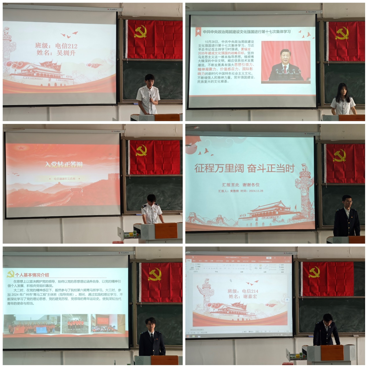 随后,根据《中国共产党章程》和《中国共产党发展党员工作细则》,按照党员转正程序,吴圳升等六名同志宣读了自己的《转正申请书》,并汇报了过去一年中在工作、学习及思想提升等各方面的具体表现。并明确了今后努力的方向,及成为中共正式党员后的庄严承诺与坚定决心。大会通过了吴圳升等六名名预备党员如期转正的申请